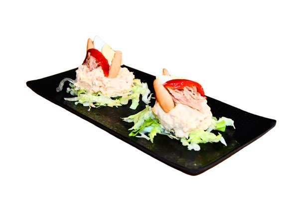49. Tosta de atún y huevo, fondo de tomate, rúcula .... 9,50 €